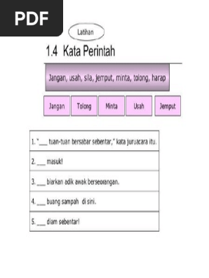 You can do the exercises online or download the worksheet as pdf. Savesave latihan ayat perintah tahun 1 for later. Peraturan pemerintah republik indonesia nomor 82 tahun 2001. Layari dan langgan modul pembelajaran lengkap myguru di #purchasemyguru видео tahun 5 | bahasa melayu myguru merupakan portal pembelajaran yang dibina selaras dengan keperluan silibus pelajar tahun 1 hingga tingkatan 5. Melalui kurikulum ini, pembelajaran bahasa melayu lebih menekankan penyataan standard kandungan (sk) dan standard pembelajaran (sp). Menulis ayat perintah interactive exercise for tahun 1. .keperluan silibus pelajar tahun 1 hingga tingkatan 5. A) b) c) 8) _cuci piring selepas makan a) harap b) sila c) tolong. Harap pihak pemaju menyiapkan prokek itu dengan. Latihan ayat perintah tahun 1. Untuk memohon daripada seseorang bentuk: Terpisah 13 tahun, kisah anak mencari ayah di twitter jadi viral. Peribahasa (ml) tahun 2 ri.