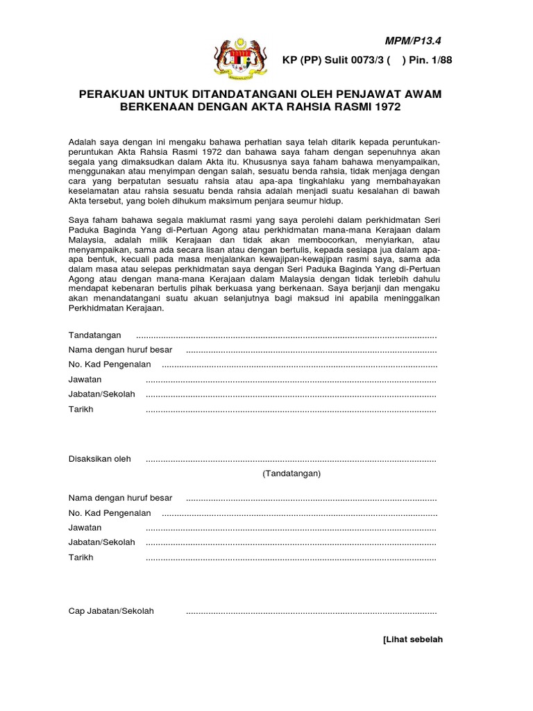 Borang Akta Rahsia Rasmi / Jabatan Akauntan Negara Malaysia Janm 2021 Program Tandatangan Borang Akuan Akta Rahsia Rasmi 1972 - Mengandungi segala pindaan hingga 1 januari 2006.