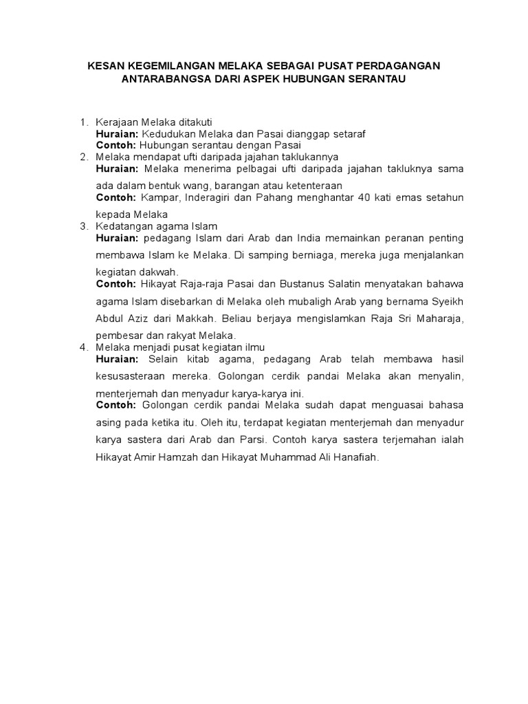 Doc Faktor Perkembangan Kesultanan Melayu Melaka Rikiko Xiangling Academia Edu from 0.academia-photos.com Kesimpulannya, melaka dapat mencapai kegemilangan adalah disebabkan banyak faktor. Terdapat tiga faktor utama yang mempengaruhi perkembangan kesultanan melayu melaka seperti berikut : Kegemilangan kesultanan melayu melaka & penyebaran agama islam perkataan yang hilang. Pada awalnya melaka bukanlah sebuah kerajaan islam. Kepimpinan raja sebagai faktor kegemilangan kesultanan melayu melaka (tp2) perkataan yang hilang oleh siewtingsu aspek kegemilangan kesultanan melayu melaka padankan Selepas bendahara tun perak meninggal dunia, tempatnya diganti oleh bendahara tun mutahir. Kegemilangan kesultanan melayu melakatugasan individu. Setiap pembesar diberikan tugas dan tanggungjawab untuk melicinkan pentadbiran.